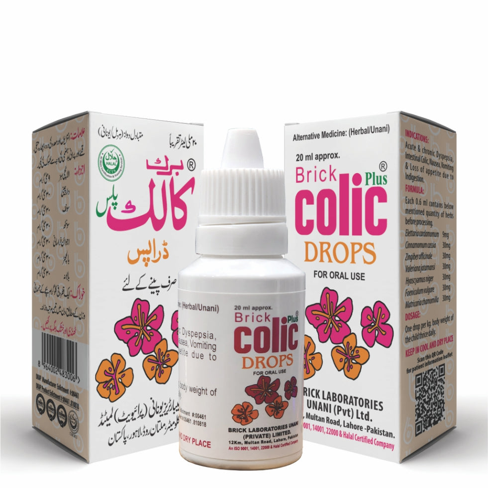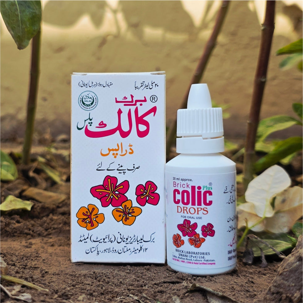 Brick Colic Plus® is a DRAP-Approved herbal supplement formulated with botanicals traditionally used in Unani medicine to relieve colic, gas, and digestive discomfort. It contains two synergistic groups of medicinal herbs: