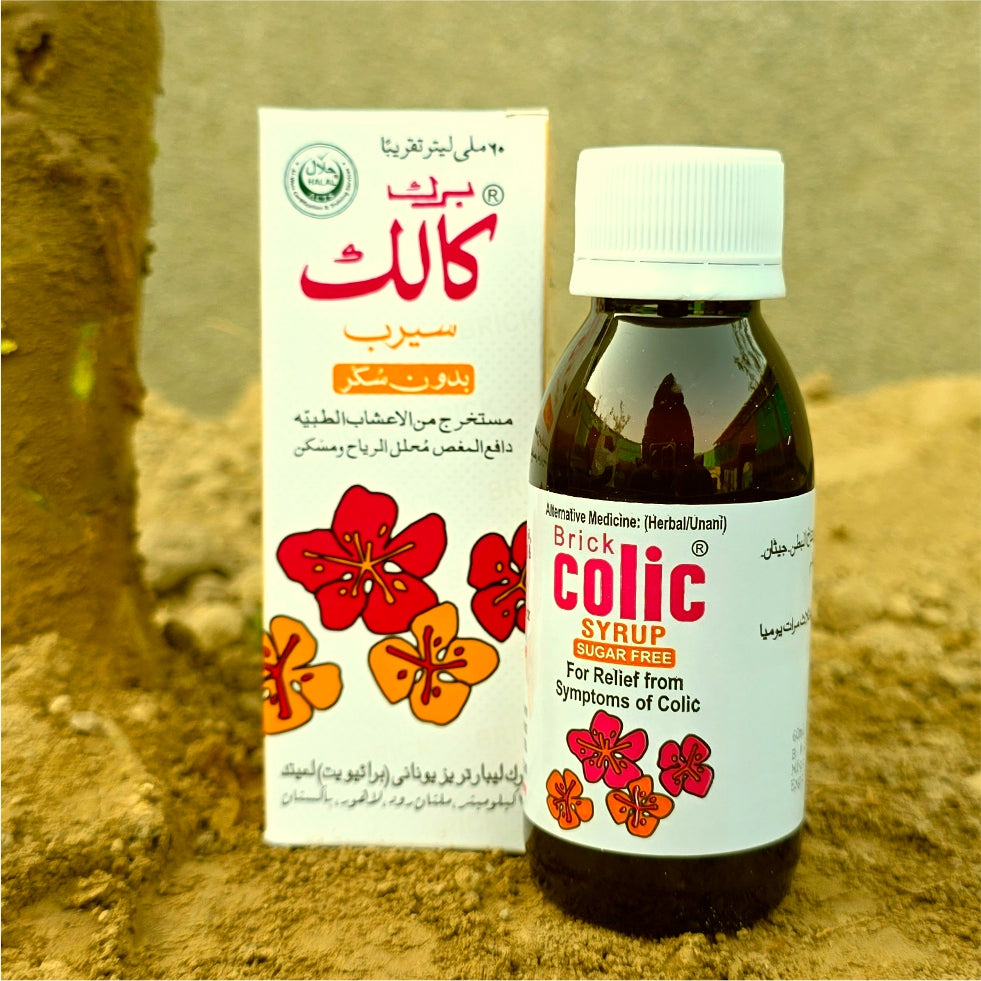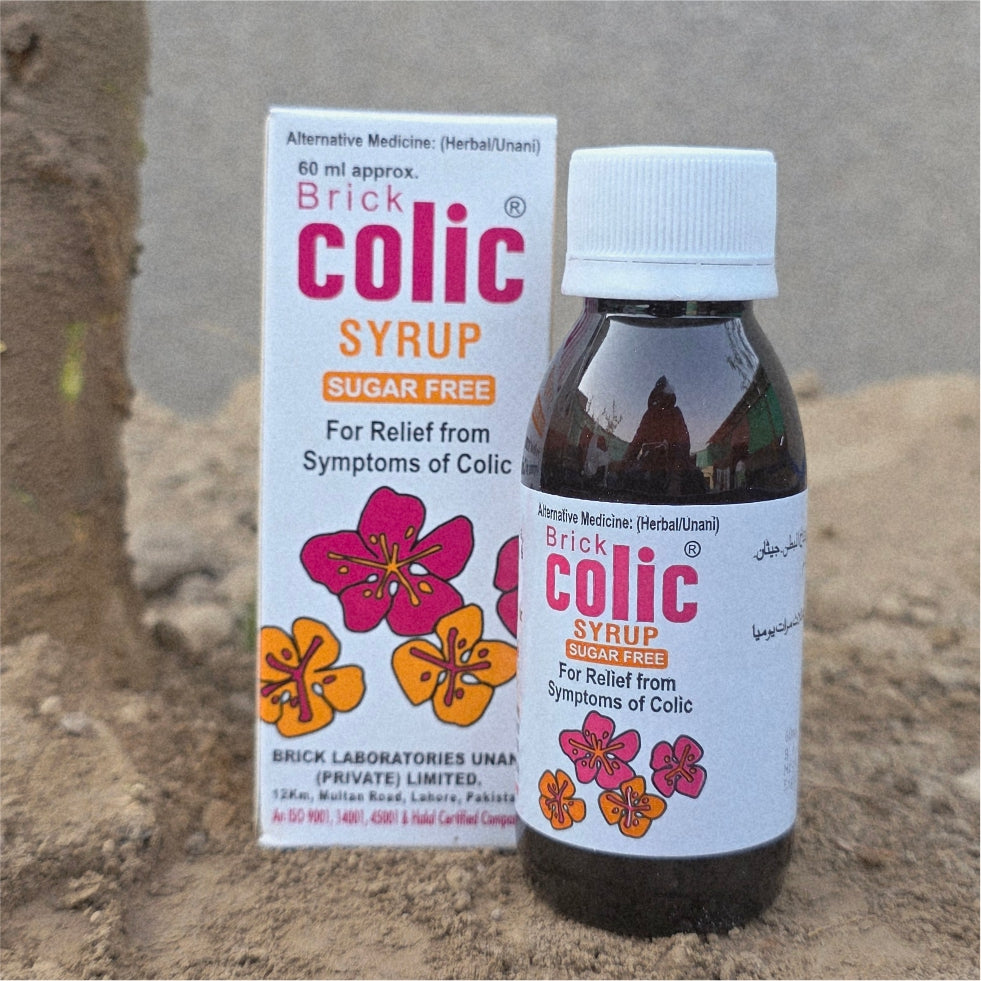 Brick Colic Syrup is a DRAP-Approved herbal supplement formulated with botanicals traditionally used in Unani medicine to promote digestive ease and comfort. It features a balanced blend of aromatic and soothing herbs known for their calming and carminative properties, making it suitable for individuals of all ages seeking natural digestive support.