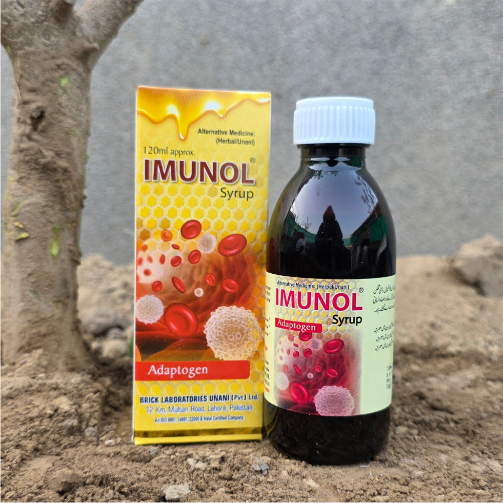 Imunol Syrup is a DRAP-Approved herbal supplement formulated with botanicals traditionally used in Unani medicine to support immune wellness and recovery. It contains a scientifically balanced blend of medicinal herbs including: