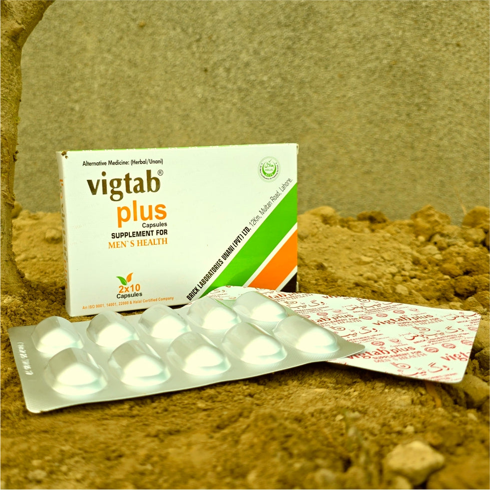 Vigtab Plus is a DRAP-Approved herbal supplement formulated with botanicals traditionally used in Unani medicine to support stamina and general wellness. It contains: